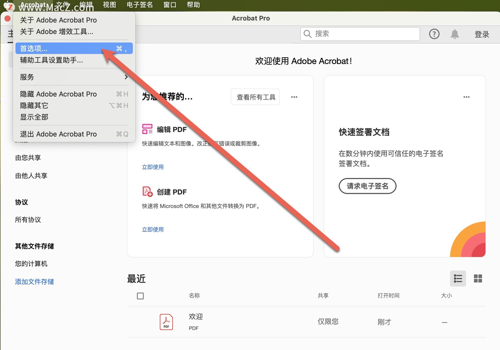 1、打开 Acrobat 中的“首选项”对话框: 选择 Adobe Acrobat>首选项。
