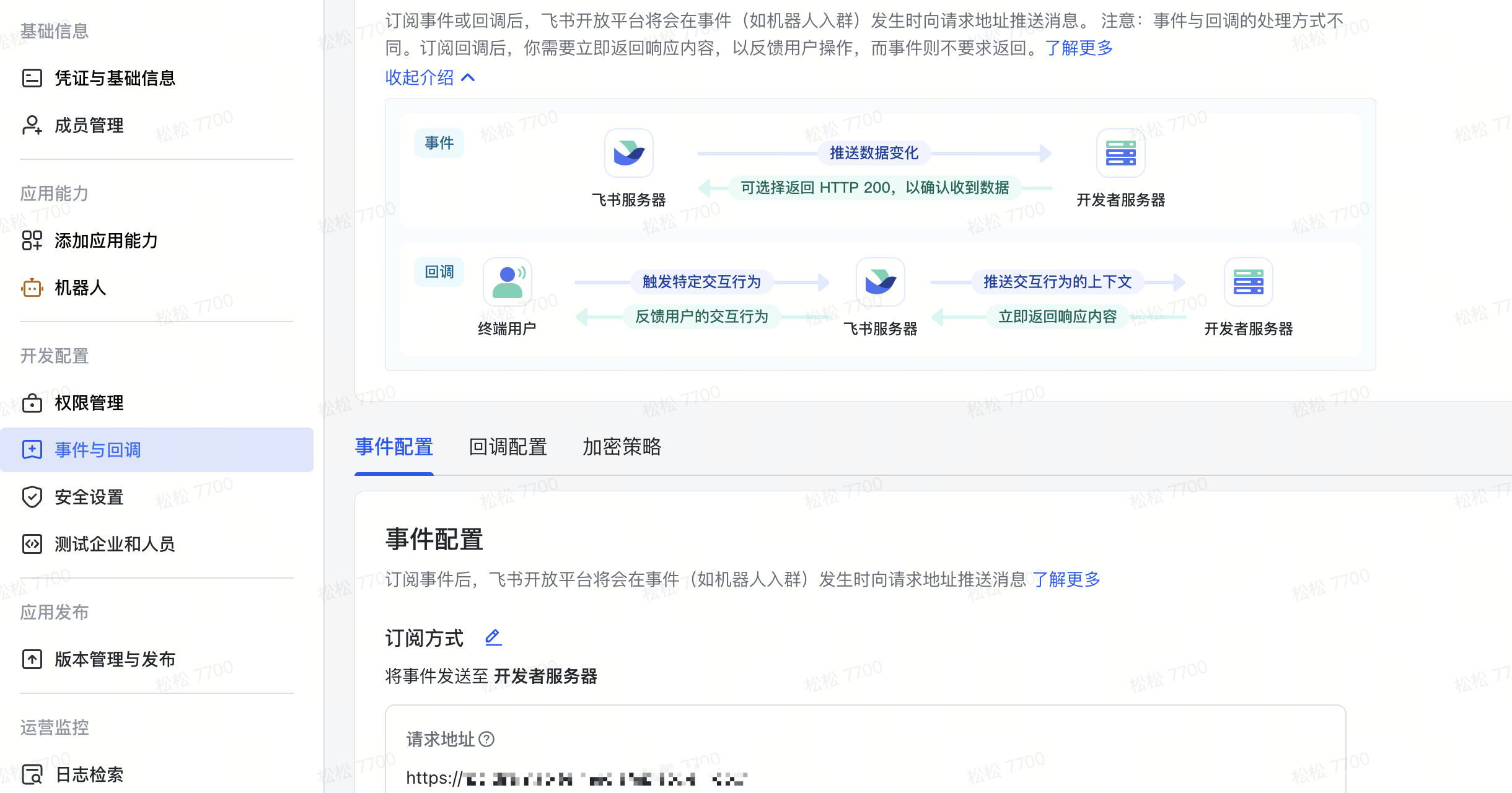 输入源头是飞书。飞书可以创建应用,别人可以 @你的机器人应用。在开发者后台,需要设置消息接收的 URL。