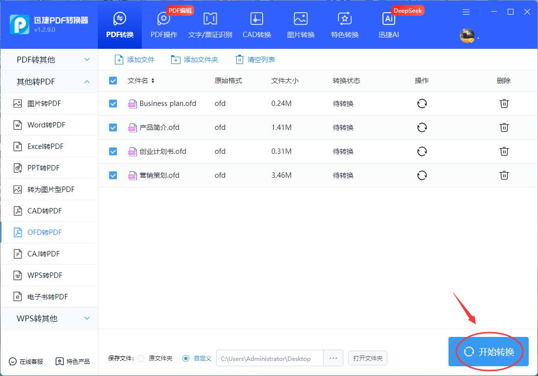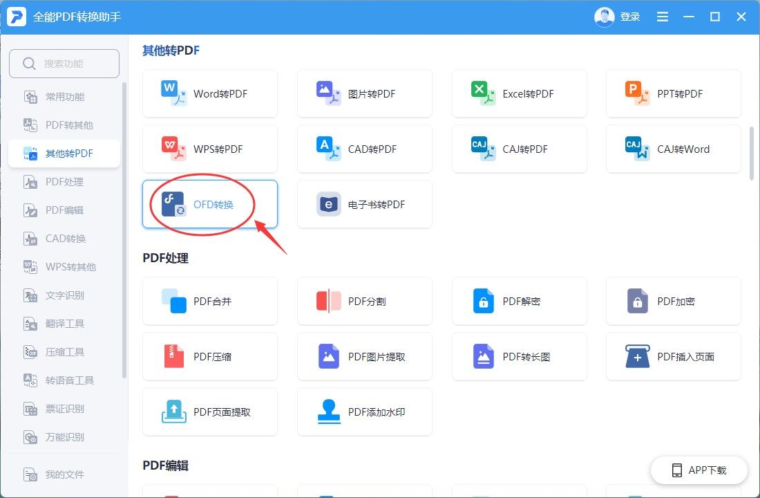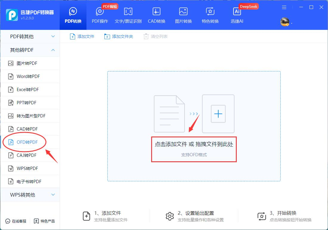 1、将软件在电脑中打开,点击界面中的“ofd转换”功能,然后将需要转换的ofd文件添加进来。