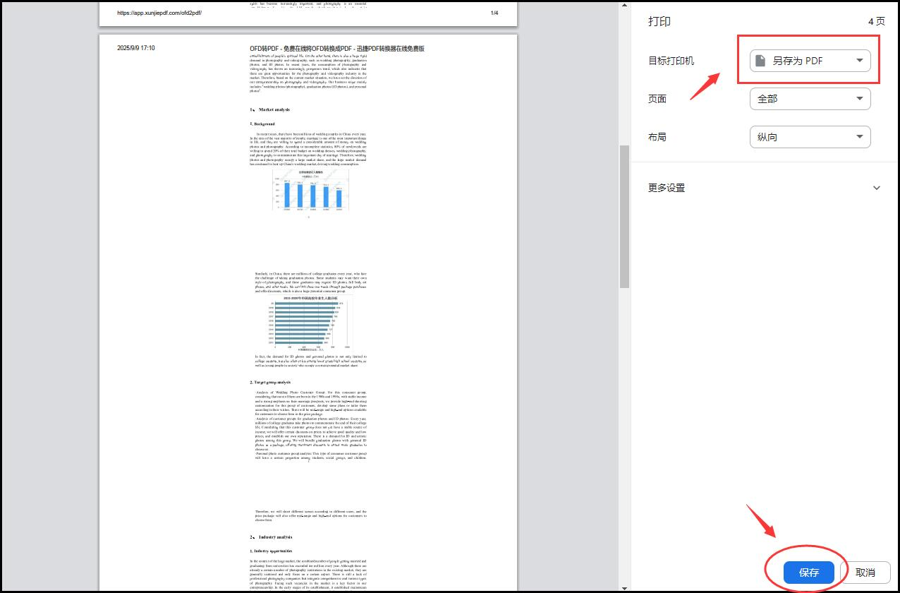 2、文件添加进来后就会打开文件,我们可以在弹出的窗口右上角中,选择“另存为PDF”,然后点击右下角的“保存”,即可将ofd转为PDF格式并保存下来了。