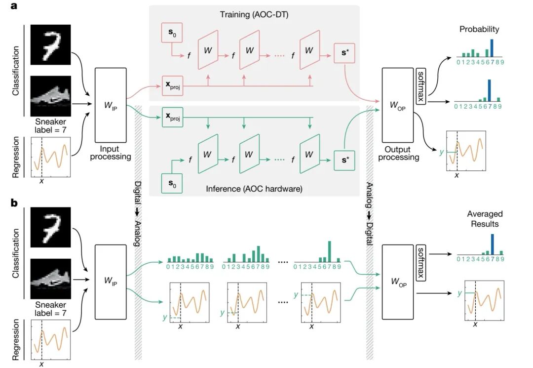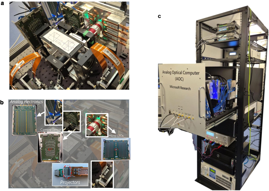 Microsoft英国剑桥研究院在Nature正刊上发表了一项重磅研究,提出了一种高效模拟光学计算机(AOC),通过融合模拟电子与三维(3D)光学技术,在单一平台上实现AI推理与组合优化的加速。AOC基于快速定点搜索机制,无需数模转换且提升噪声鲁棒性,可运行具有递归推理能力的计算密集型神经模型,并实现先进梯度下降法用于优化任务。