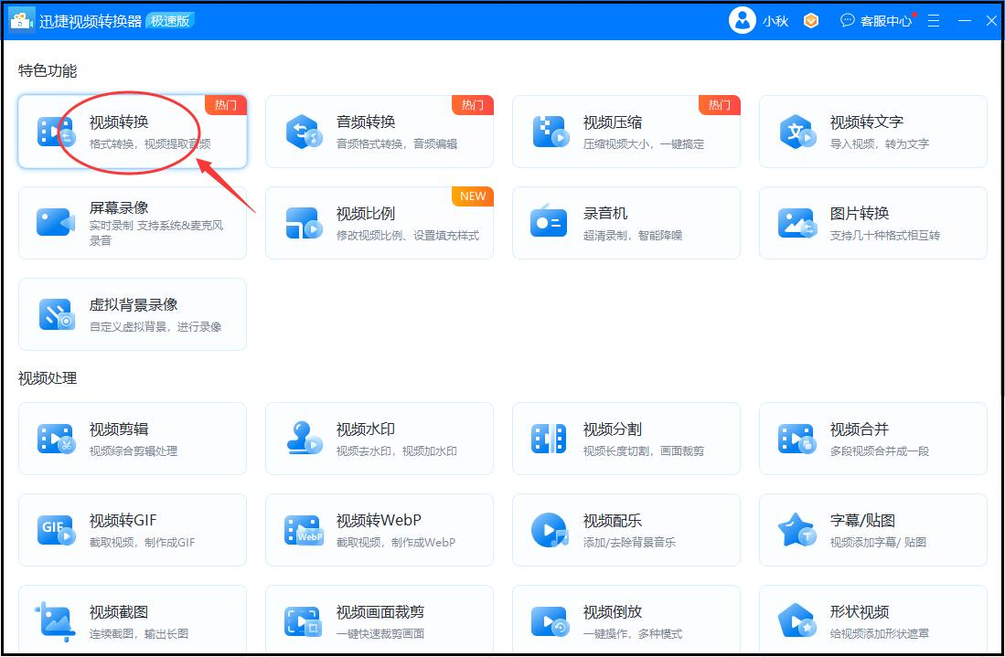 1、将软件在电脑中打开,点击界面中的“视频转换”功能。