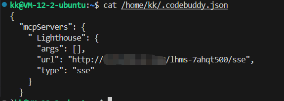codebuddy mcp add --scope user --transport sse Lighthouse http://xxxxxxxxxx/lhms-7ahqt500/sse这条命令的参数分解如下: