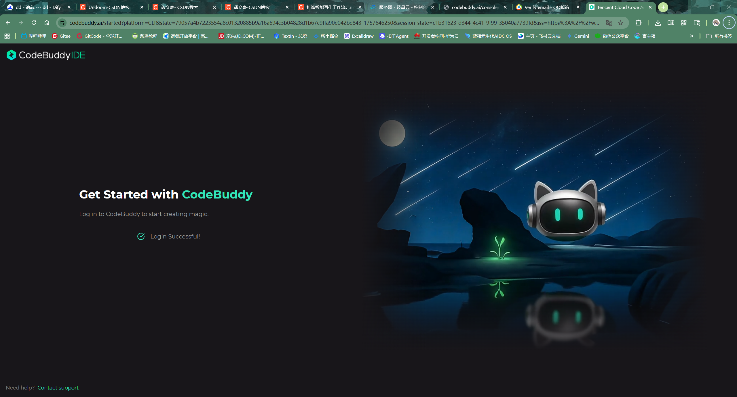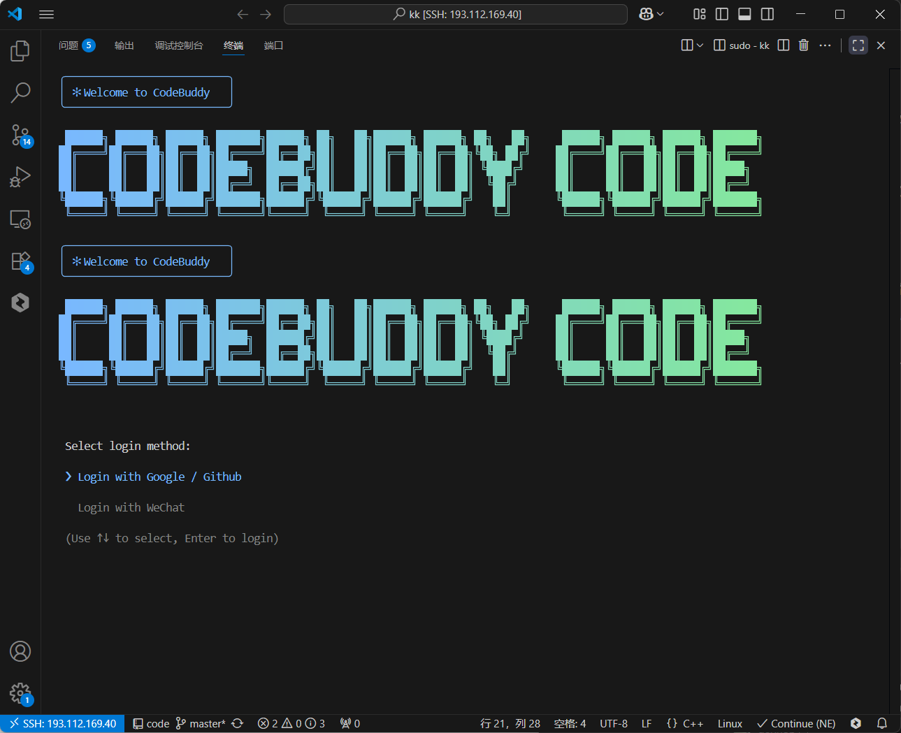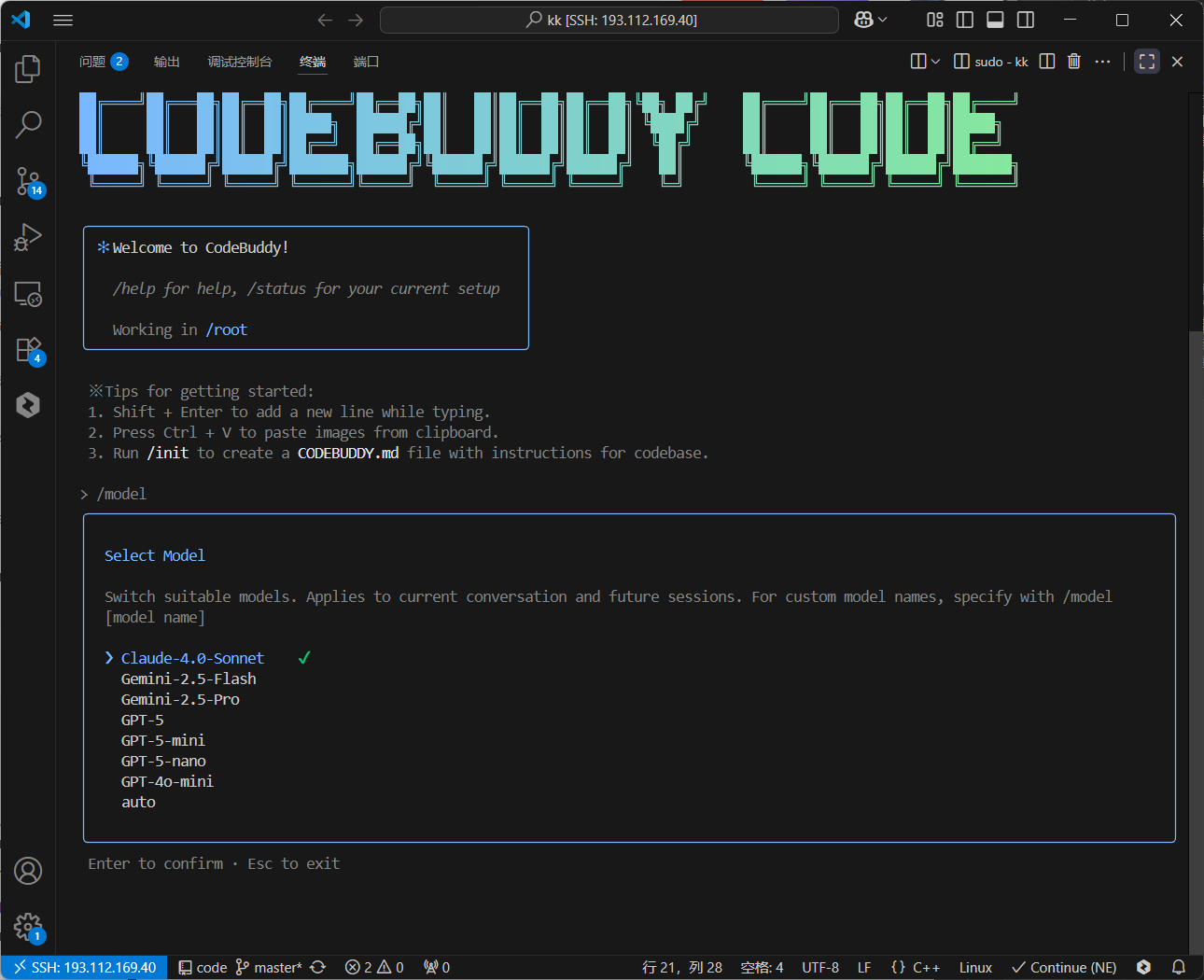 安装完成后,在终端直接输入 codebuddy 即可启动这个强大的 AI 命令行工具。