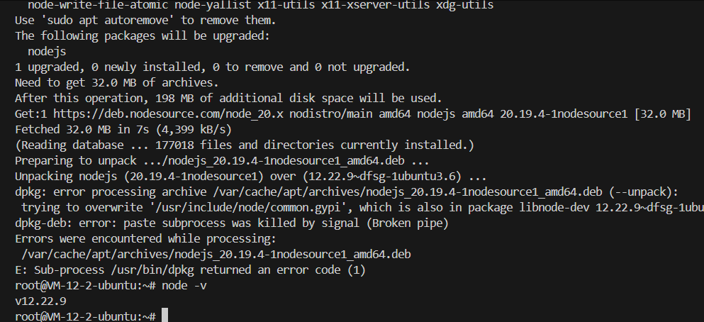 然而,在某些 Linux 发行版的官方源中,nodejs 包可能会与 libnode-dev 等其他开发包产生文件冲突,导致安装失败,并出现 dpkg: error processing 的错误。
