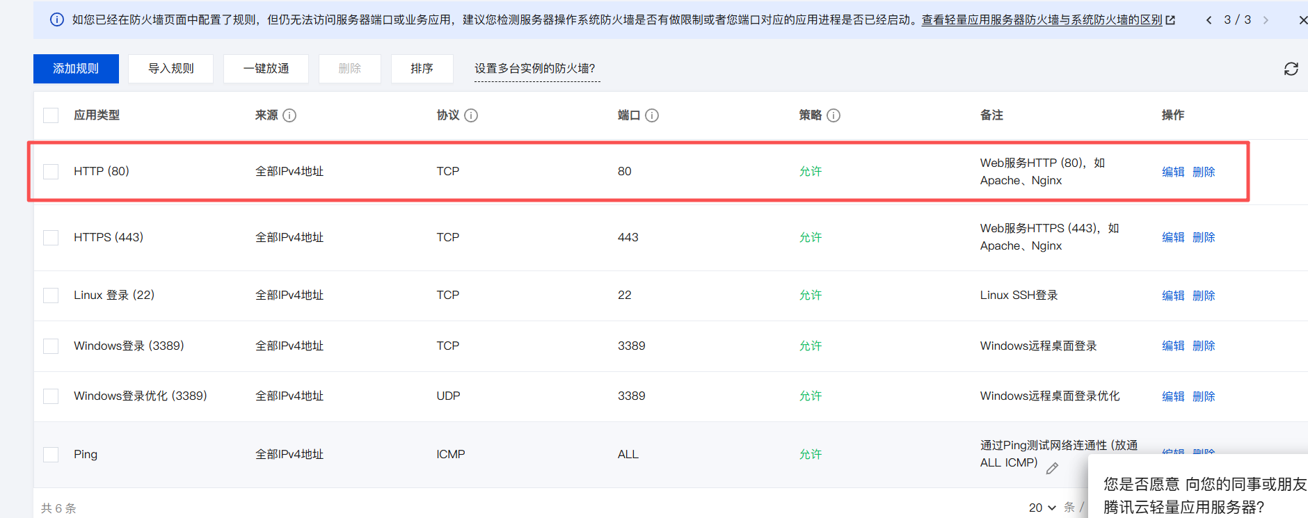 | 为指定的服务器实例新增一条防火墙规则。 | 开放特定端口(如为网站开放80/443端口)或限制特定IP的访问。 |