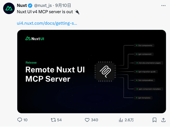 总体而言,Nuxt UI的 MCP 服务器极大提升了AI助手在开发中的作用,适合 Nuxt 大家集成使用。