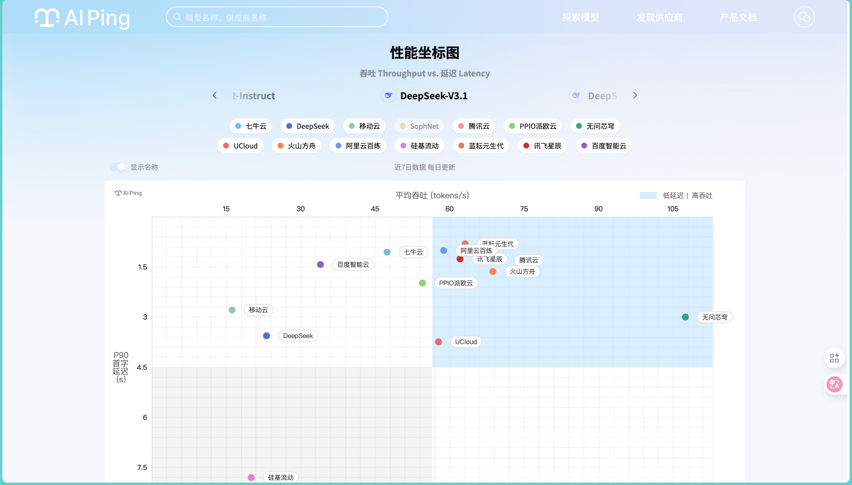 进入AI Ping官网后,最显眼的就是实时更新的性能排行榜: