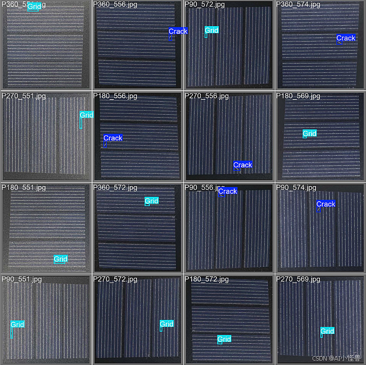 光伏板缺陷检测数据集大小1920张,数据集共包含划痕、断栅与脏污三类缺陷。