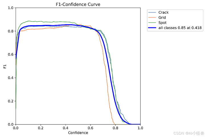 )F1_curve.png:F1分数与置信度(x轴)之间的关系。F1分数是分类的一个衡量标准,是精确率和召回率的调和平均函数,介于0,1之间。越大越好。