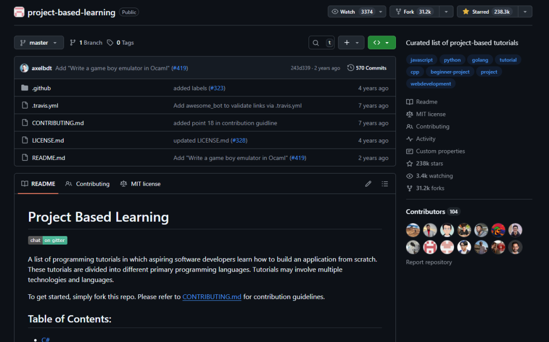 一个叫做"Project Based Learning"[1]的仓库,专门收集各种编程语言的实战项目教程。
