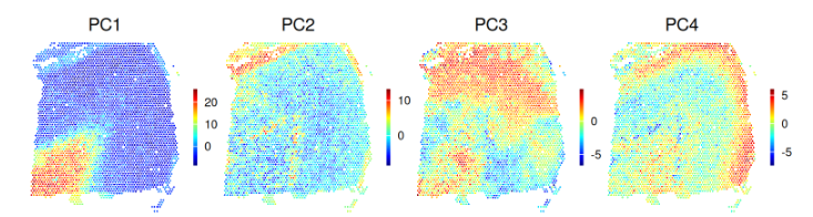 下一步的标准做法是使用主成分分析(PCA)进行降维,应用于 top HVGs(或 SVGs)集合。然后,top 主成分(PCs)的集合可以作为后续步骤的输入。