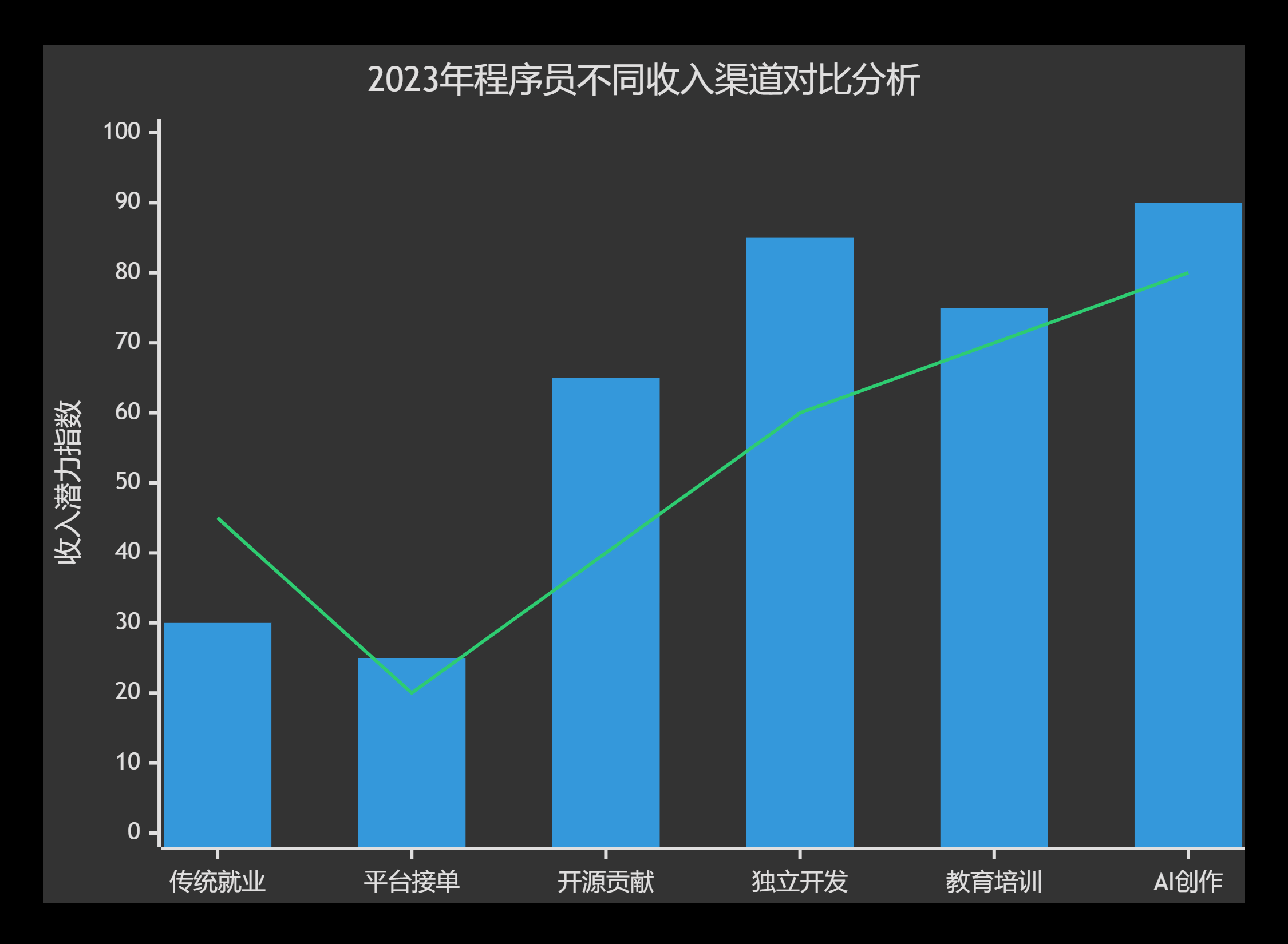 从数据可以看出,传统就业模式虽然稳定,但收入潜力有限;而AI创作、独立开发和教育培训等自主性较强的方向则展现出更高的收入上限。