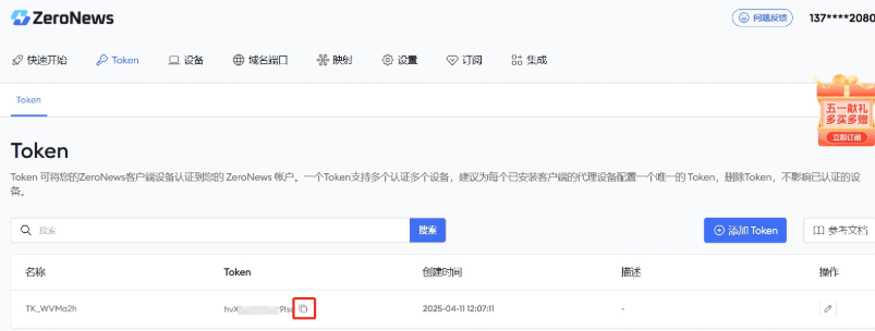 账号登录成功后,你就可以在主页看到你的密钥token,复制备用。