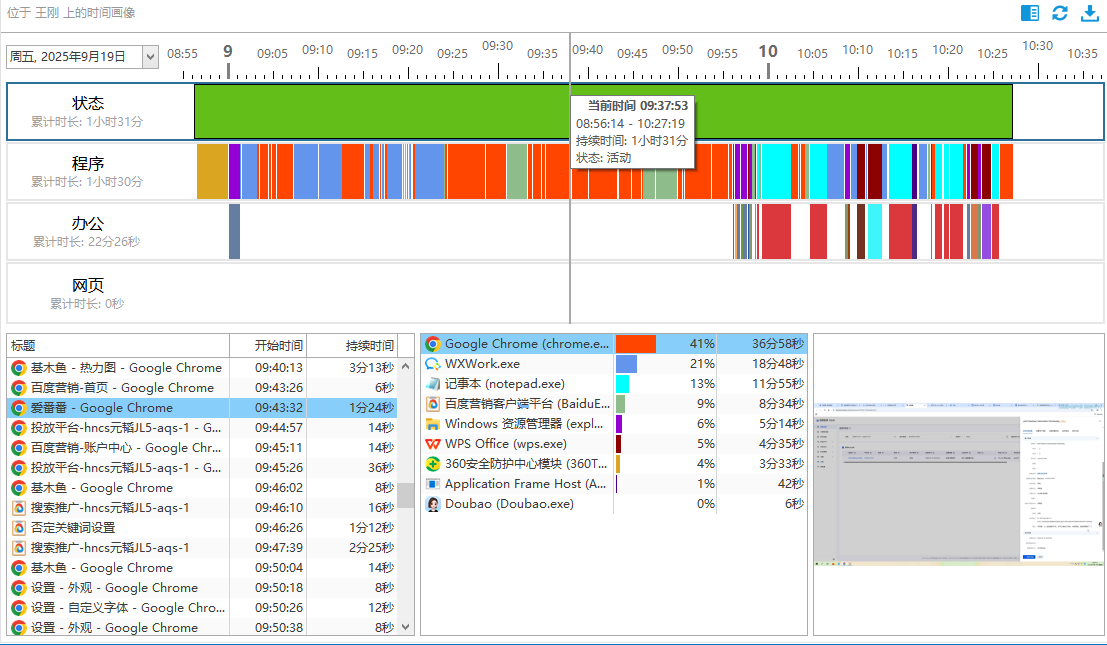 4. 时间画像 —— 智能分析屏幕行为,生成“数字员工报告”