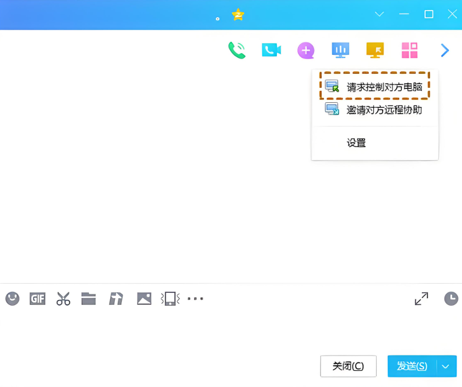 微信(Windows版):点击左下角“+”→“远程协助”,同样需要对方确认。