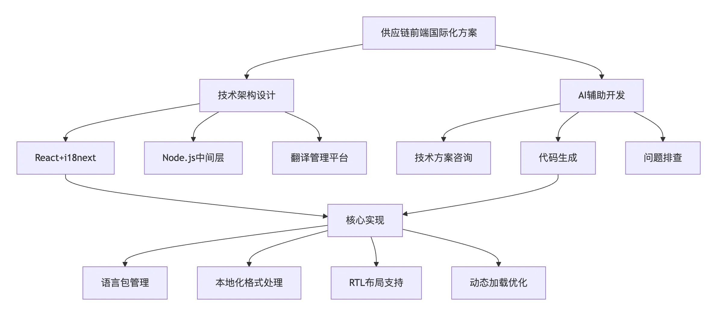 }通过本项目的实践,我们成功为超商供应链系统构建了完整的前端国际化方案,支持中英文双语切换,具备扩展更多语言的能力。AI工具在整个开发过程中发挥了重要作用,从技术方案咨询、代码生成到问题排查,显著提升了开发效率。