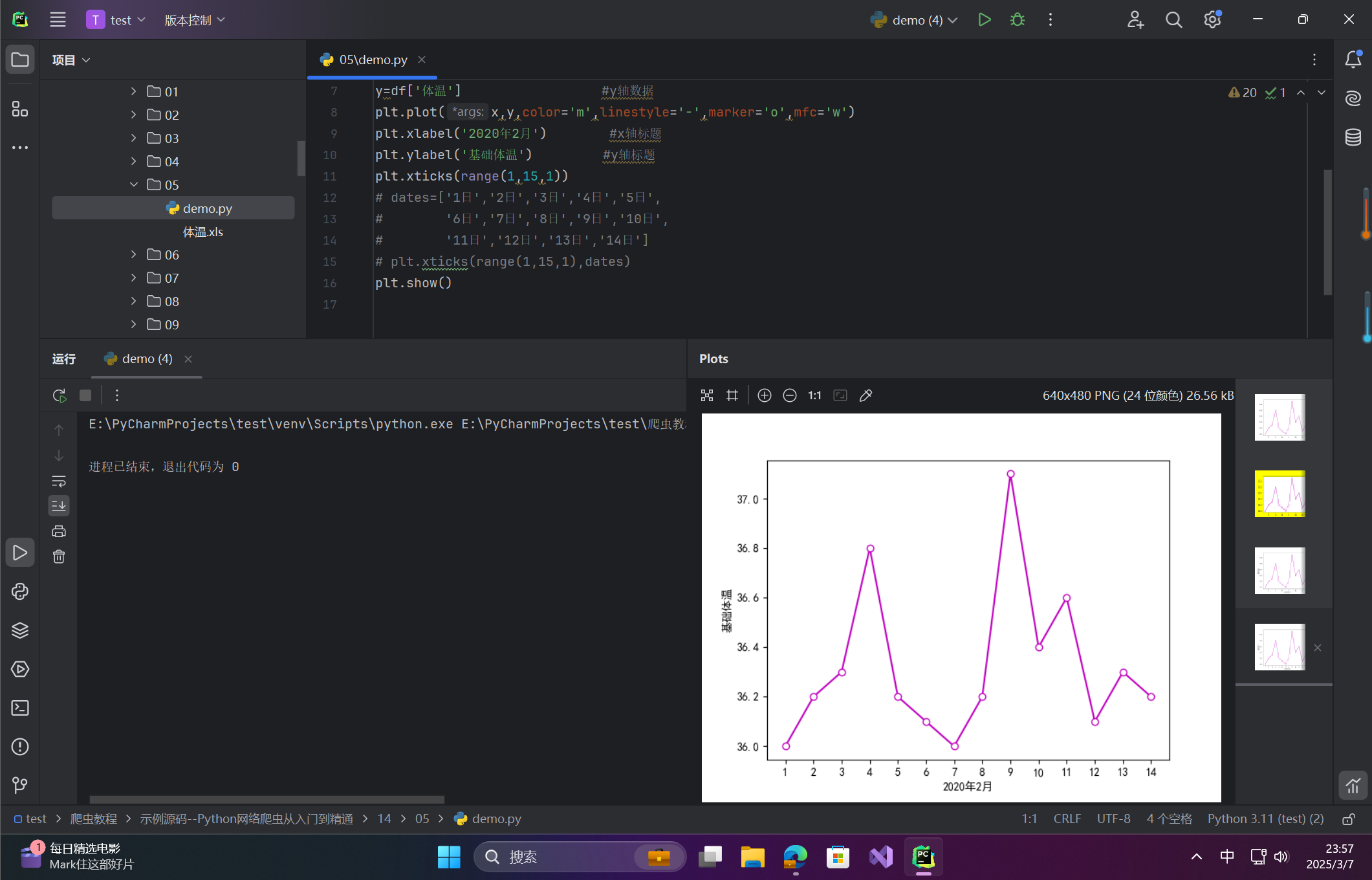 (ms): 标记大小绘制体温折线图