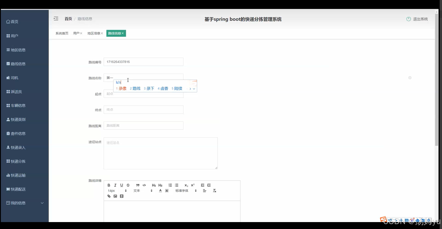 在电子商务蓬勃发展的当下,快递行业迎来了前所未有的增长契机。据统计,近年来我国快递业务量持续攀升,每年以惊人的速度递增,庞大的业务量使得快递分拣环节面临着巨大挑战。传统快递分拣主要依赖人工操作,存在诸多弊端。一方面,人工分拣效率低下,在面对海量快递包裹时,难以在规定时间内完成分拣任务,导致快递延误现象频发,严重影响了客户体验和快递企业的信誉。另一方面,人工分拣准确性难以保证,容易出现分拣错误,如将包裹分拣至错误的目的地,这不仅增加了后续处理的成本和工作量,还可能造成包裹丢失或损坏,给客户和快递企业带来不必要的损失。随着信息技术的飞速发展,智能化、自动化管理成为快递行业提升竞争力的必然选择。SpringBoot作为一款流行的Java框架,具有开发效率高、易于集成、稳定性强等优点,能够快速搭建起高效、可靠的快递分拣管理系统。通过引入先进的信息技术和管理理念,基于SpringBoot的快递分拣管理系统可以实现对快递包裹的自动化识别、精准分拣和实时跟踪,大大提高分拣效率和准确性,降低人力成本和运营风险。此外,研究基于SpringBoot的快递分拣管理系统,有助于推动快递行业向智能化、现代化转型,提升整个行业的服务水平和运营效率,适应电子商务快速发展的需求,具有重要的现实意义和广阔的应用前景。