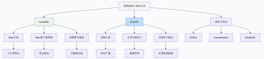 理解了这些基础概念和挑战后,我们现在可以深入探讨两个最重要的工业级因果推断工具库:CausalML和EconML。