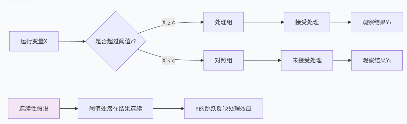 数学表达式为:D = 1(X ≥ c),其中X是运行变量,c是阈值。