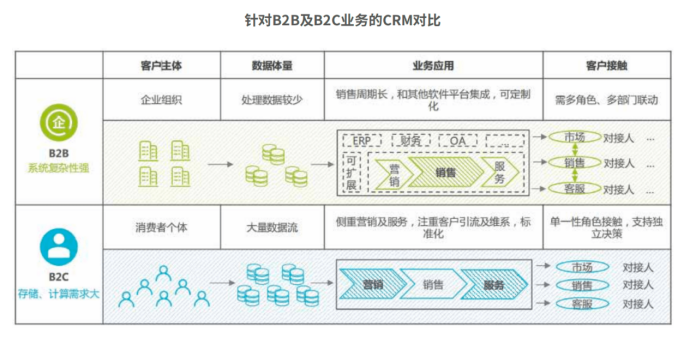l To C型:CRM系统则主要面向个人用户,业务场景相对简单,流程较为标准化。其核心功能在于吸引潜在客户并增强客户粘性。由于连接的是个体消费者与企业各部门对接人,To C型CRM系统需要处理大量的数据流,以确保能够快速响应客户需求并提供个性化的服务体验。