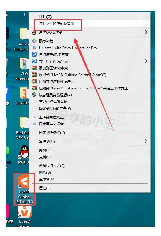 - 接下来需要进行一些设置。在桌面找到Live2D的快捷方式图标,右键点击选择"打开文件所在位置"。