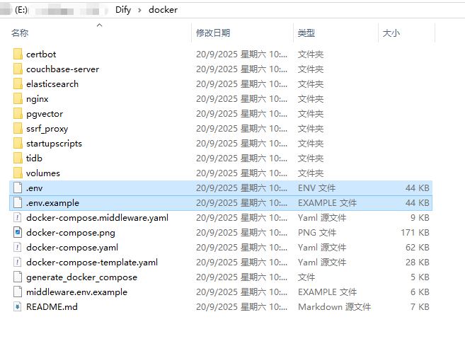 2. 进入《自选路径》/docker,把 ".env.example" 复制后,重命名为".env"