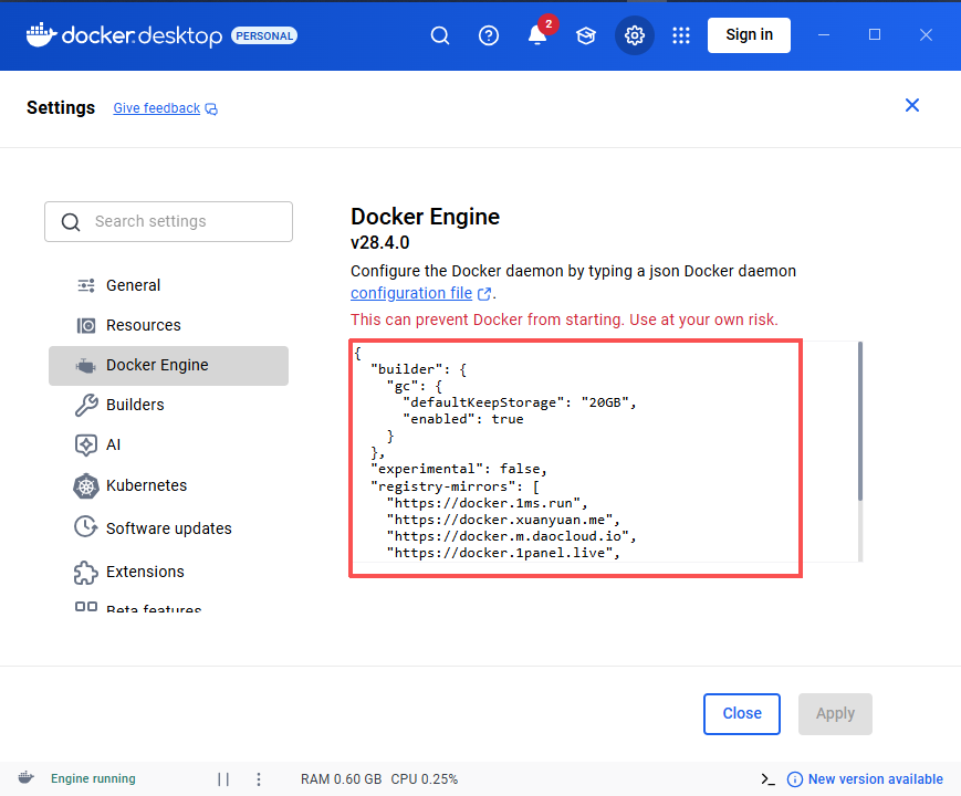 5. 关闭 Docker Desktop 为后台运行,需要时在任务栏重新召唤