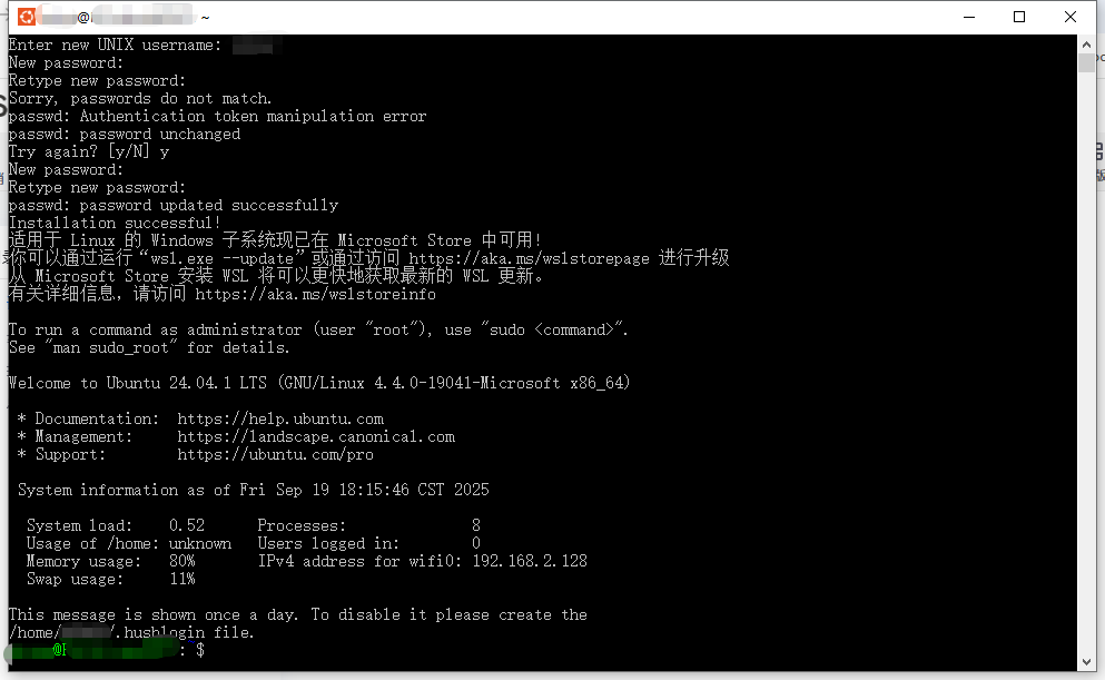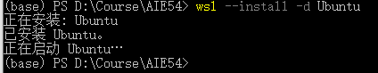 1. 安装Ubuntu:powershell 执行 wsl --install -d Ubuntu, 成功,Ubuntu 自动启动