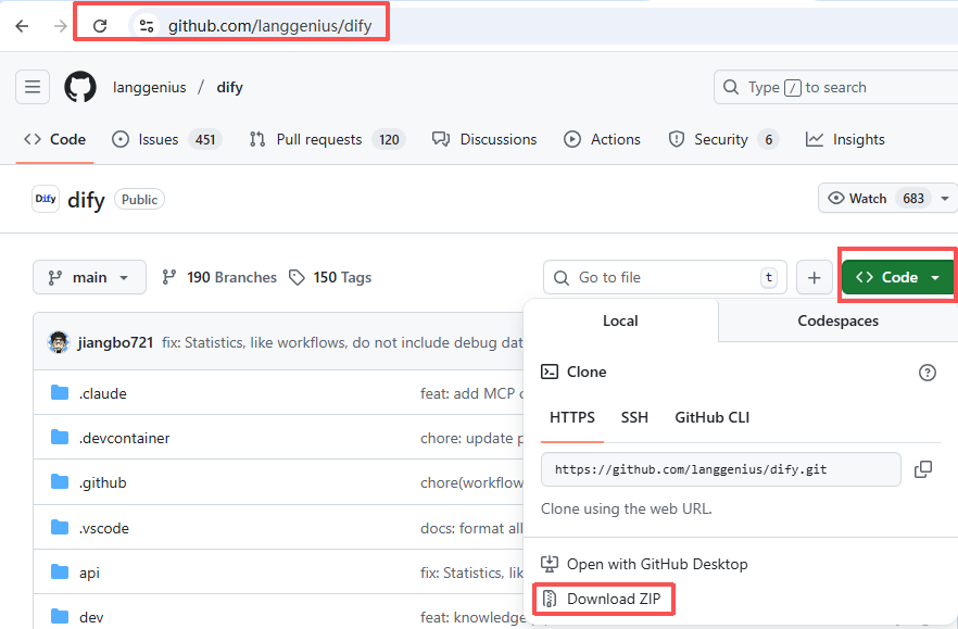 1. 在https://github.com/langgenius/dify下载 Dify 源码