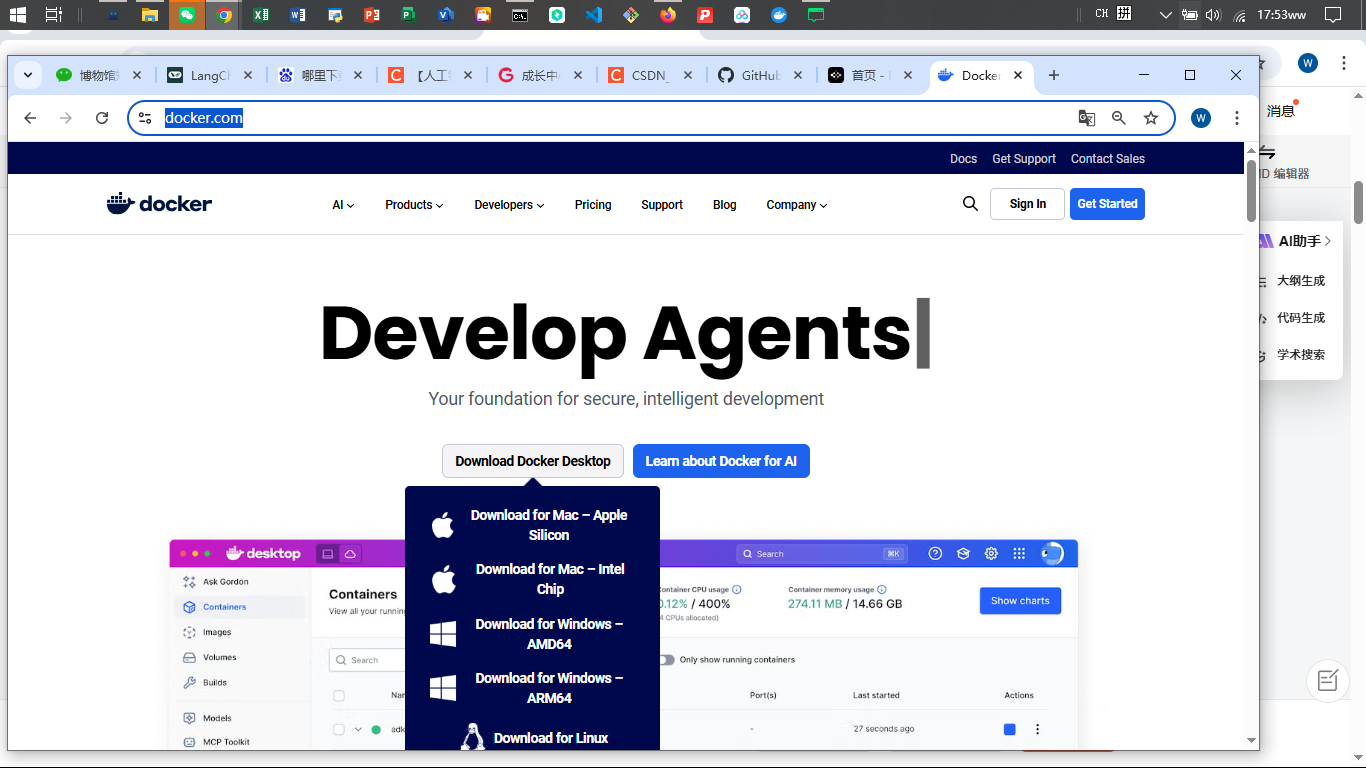 3. 求助大模型,启动成功,步骤见下方【三、排查】 > 【I. Docker Desktop】。