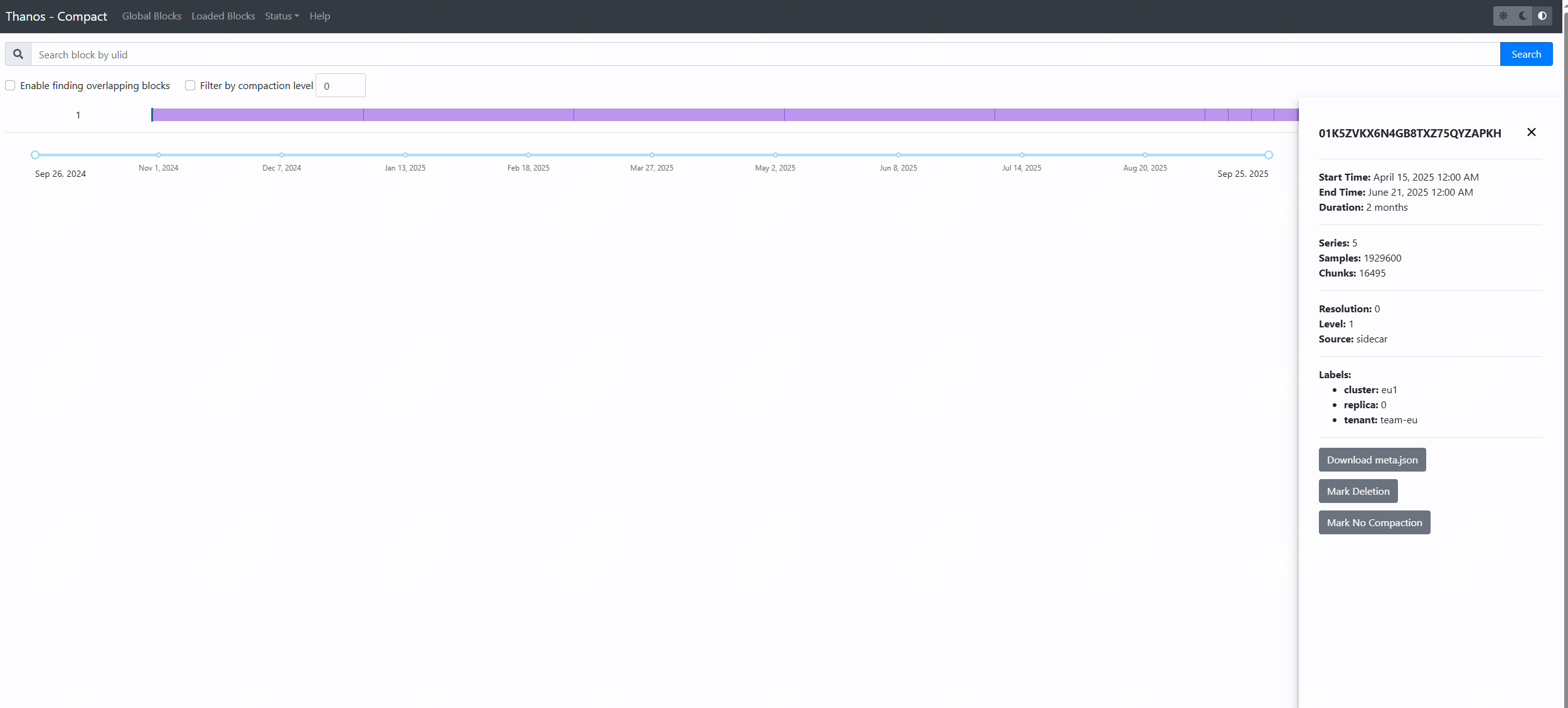 在 Thanos 的架构中,Compactor 是一个 后台异步服务,主要负责对对象存储(例如 S3、GCS、OSS、Ceph 等)里的时序数据块进行处理和优化。它的核心功能包括: