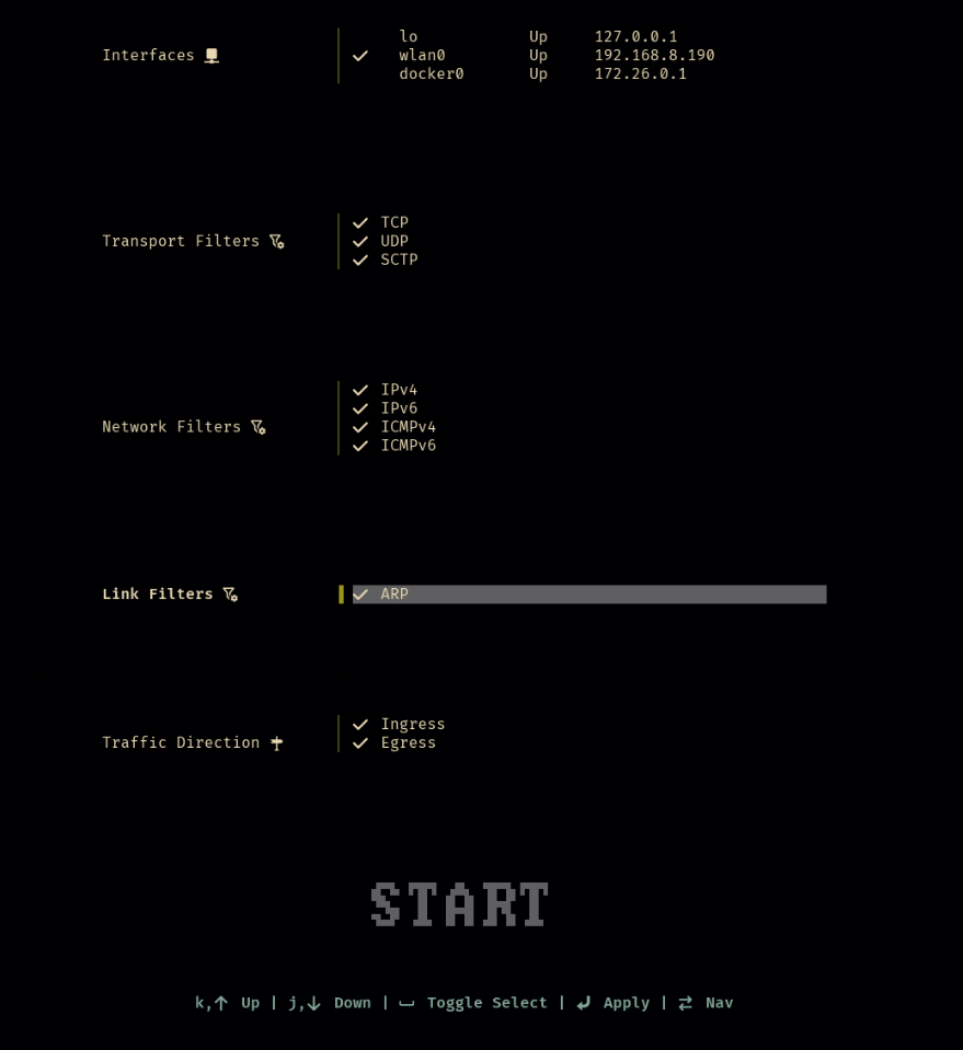 今天推荐的这个小工具可以在linux终端界面上展示当前宿主机的网络流量情况,采用rust语言开发,通过ebpf来嗅探流量。