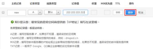 记录值:输入公网IP地址。