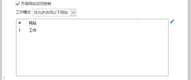 再在网站访问控制——仅允许访问以下网站中,把这个“工作”网址分类添加进去,然后选择要施行策略的客户端,就设置好网站白名单了。