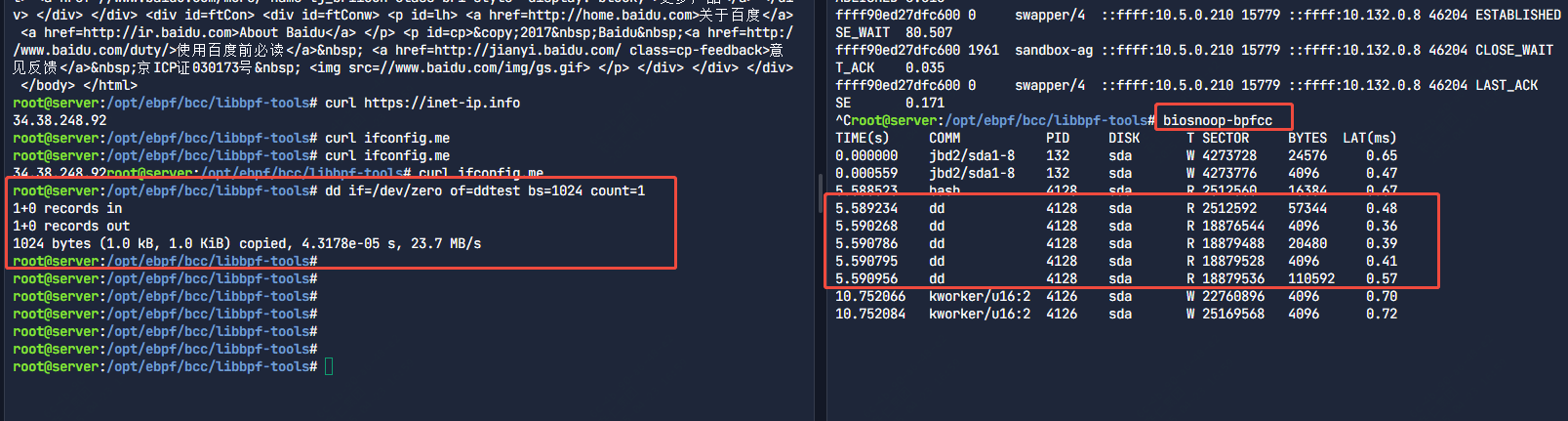 biosnoop-bpfcc 是一个用于追踪块设备 I/O(磁盘 I/O)的 eBPF 工具。它可以监测系统中的磁盘读写操作,并打印详细信息,包括进程 ID(PID)、进程名称、I/O 类型(读/写)、数据大小、I/O 延迟等