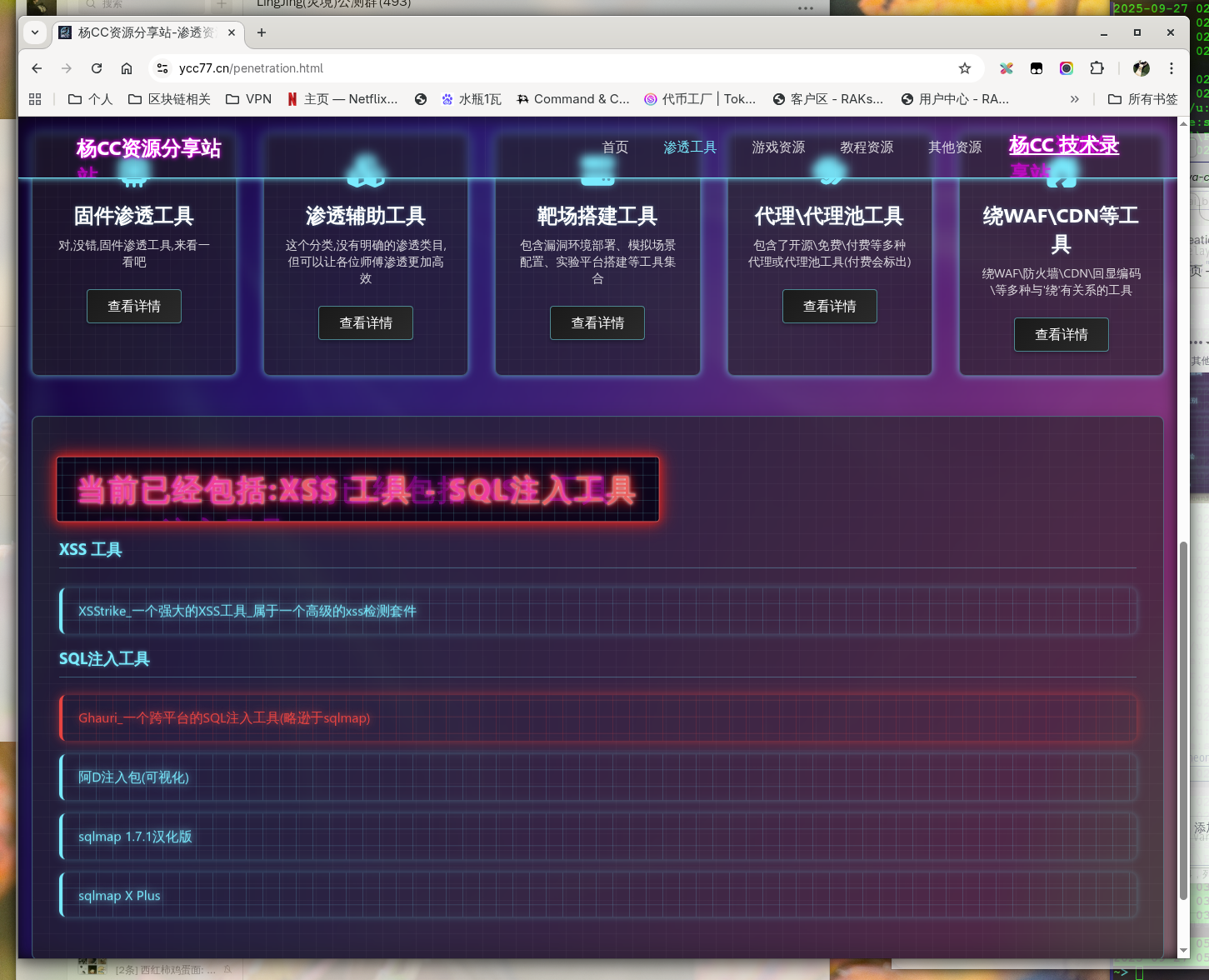 在主页我们看到,其中包含了渗透工具和一些其他资源,我们着重来介绍渗透工具,毕竟这个网站核心就是咱们的渗透工具,不然我也不会推荐这个网站。