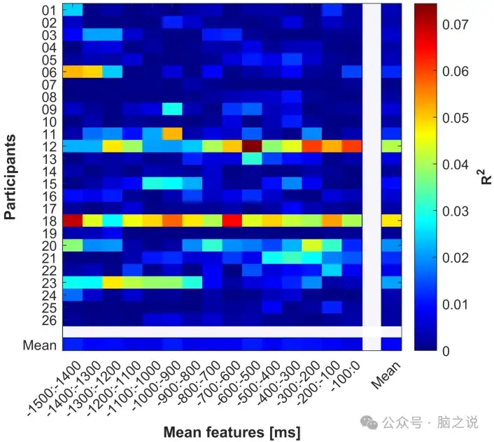 RP 分析:在运动前 - 1500 至 0ms 期间,对额中央通道(Cz、C3、C4、Fz、FC1、FC2)的 RP 进行分析,将其按 100ms bins 参数化,得到每位参与者 15 个特征,运动起始后 0-1000ms 仅用于可视化