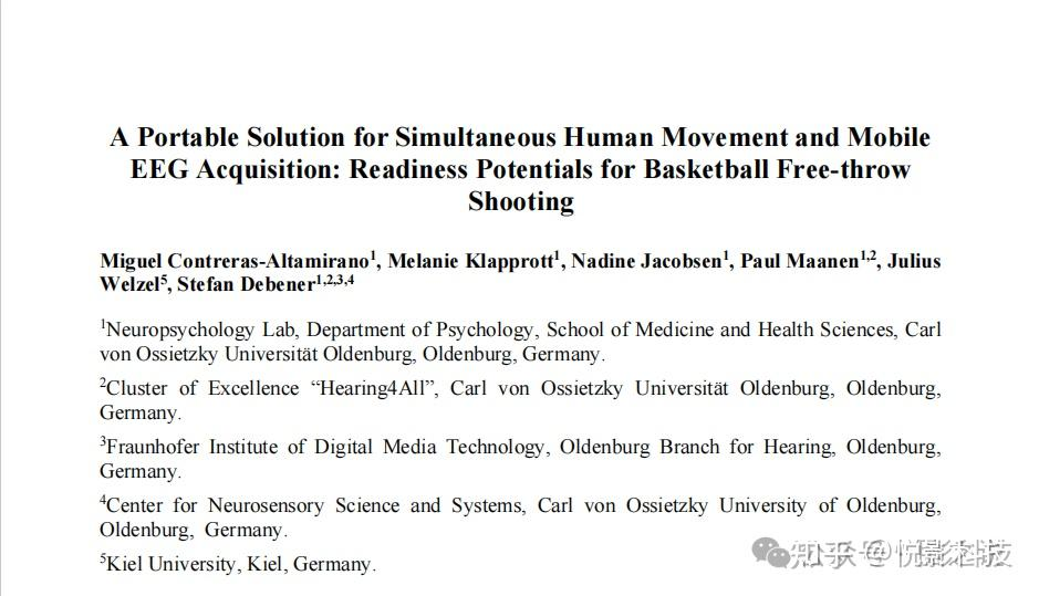 文献来源:Contreras-Altamirano, M., Klapprott, M., Jacobsen, N., Maanen, P., Welzel, J., & Debener, S. (2025). A Portable Solution for Simultaneous Human Movement and Mobile EEG Acquisition: Readiness Potentials for Basketball Free-throw Shooting. arXiv preprint arXiv:2501.05378.