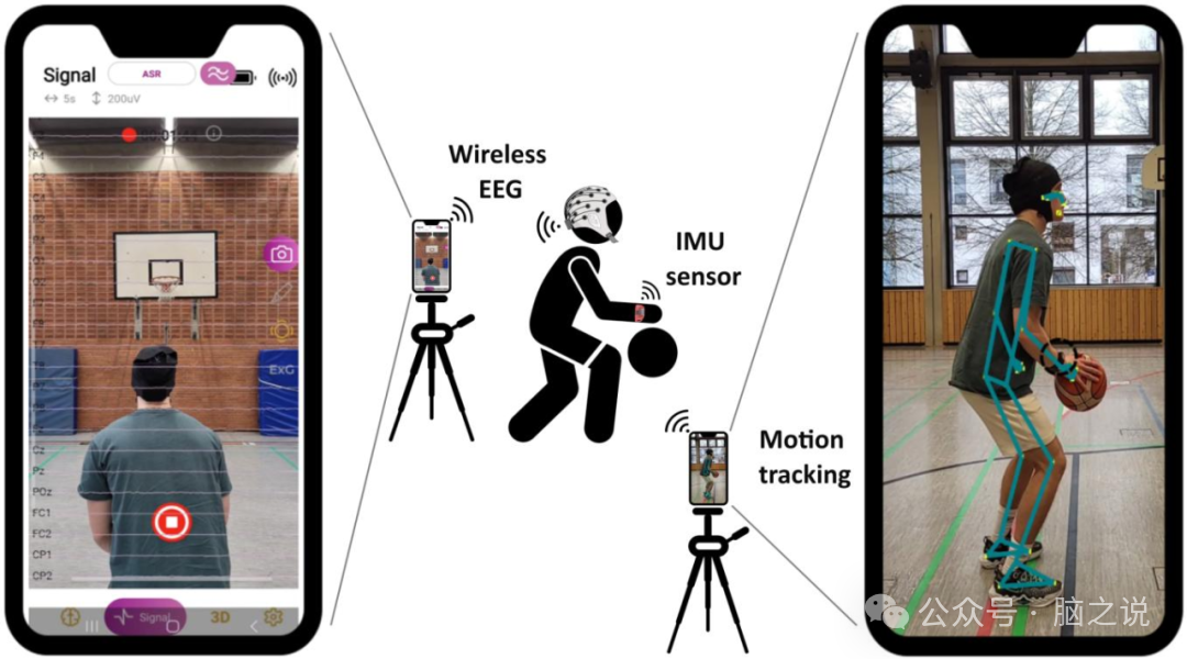 你有没有想过,当篮球运动员站在罚球线前,大脑和身体是如何默契配合完成投篮的?最近,一项来自德国奥尔登堡大学的研究 “A Portable Solution for Simultaneous Human Movement and Mobile EEG Acquisition: Readiness Potentials for Basketball Free-throw Shooting” 给出了有趣的答案 —— 他们用两部智能手机就实现了对大脑活动和身体动作的同步监测,揭开了篮球罚球中的神经与运动秘密。