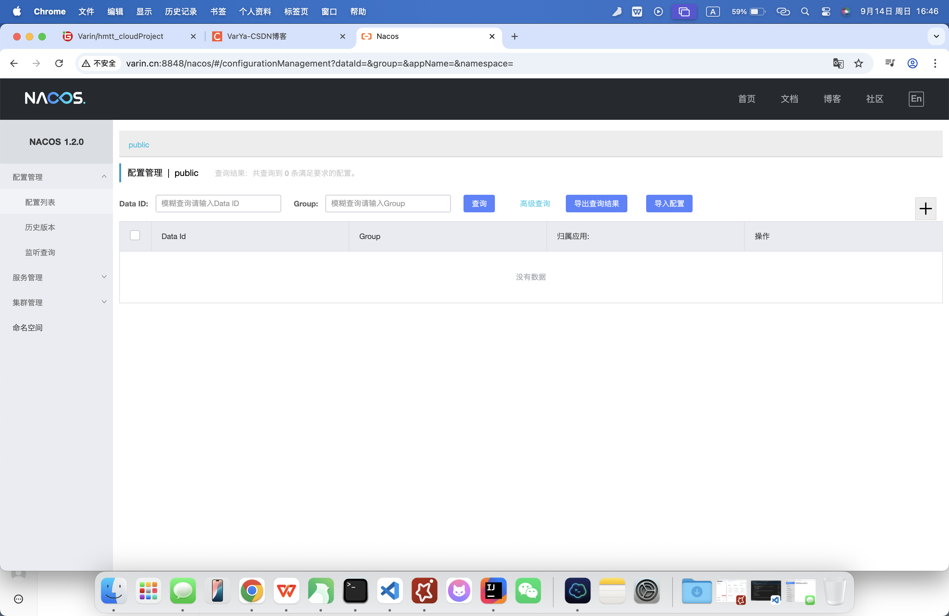(运行中),说明容器启动成功;http://宿主机IP:8848/nacos