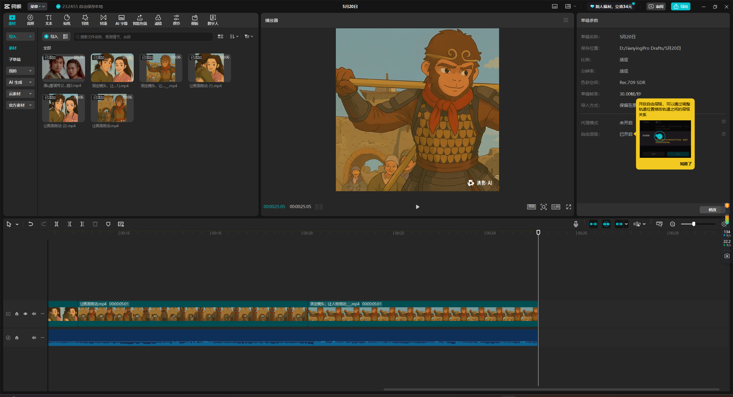 先准备好视频素材,这里我选择《大话西游》经典片段。