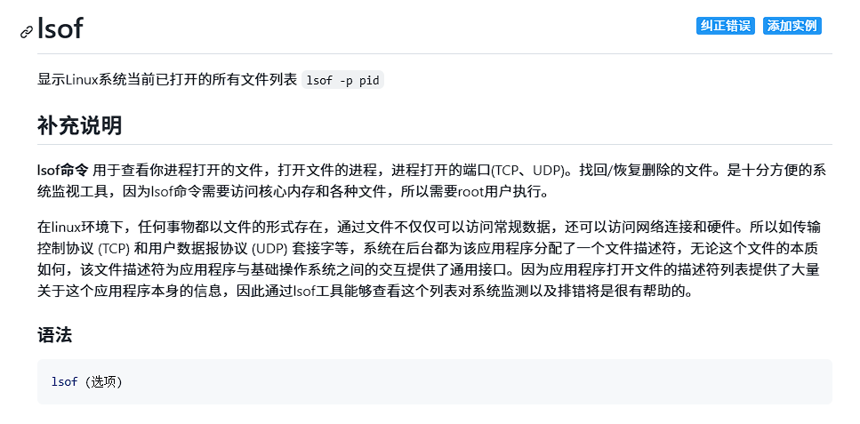 最近在群里看到有小伙伴问,服务器上某个端口被占用了,但是不知道是哪个进程在用,怎么办?还有人说磁盘空间明明删除了大文件,但是df显示空间还是没释放。这些问题其实都可以用一个神器来解决——lsof。