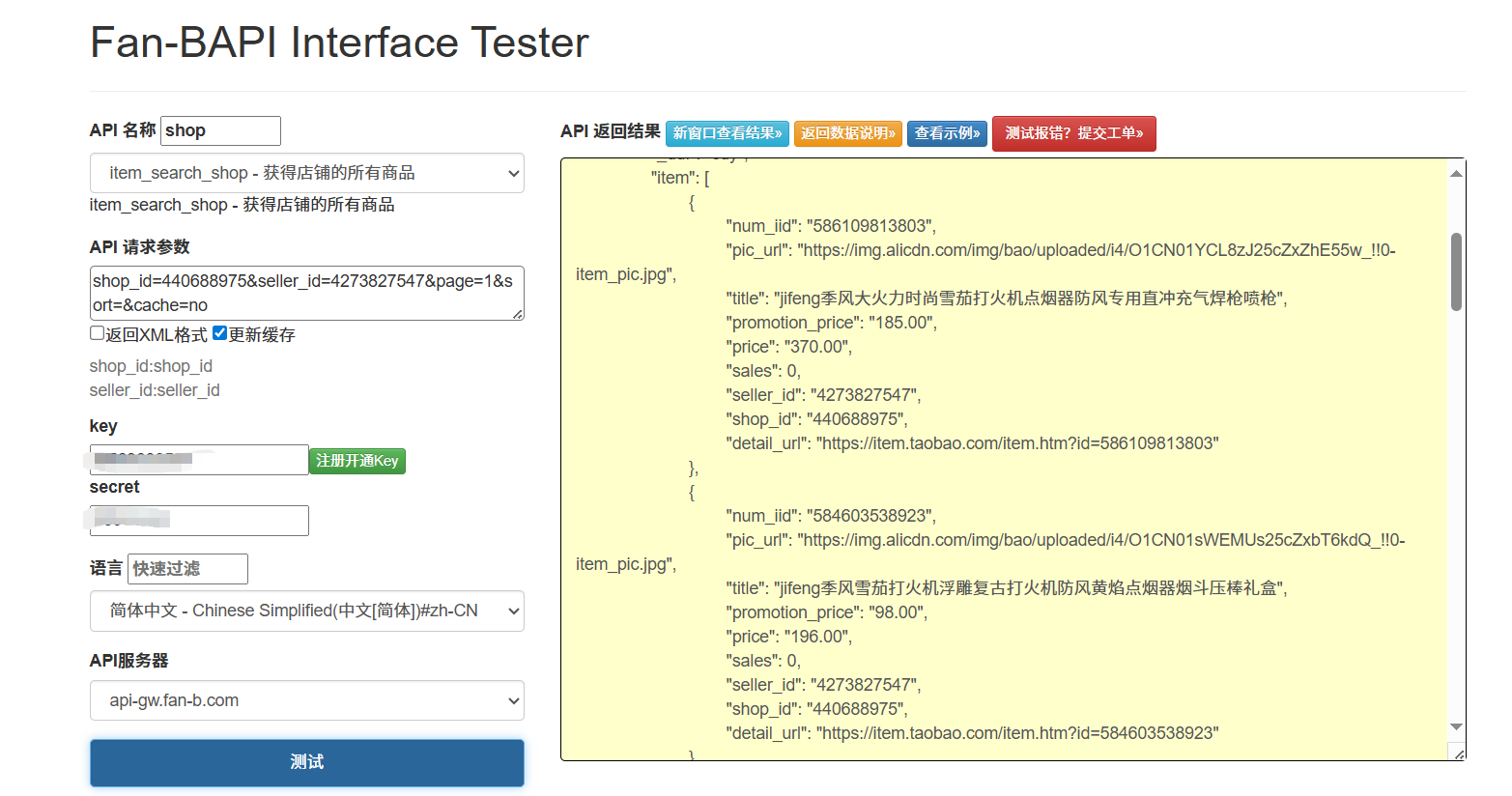 # 测试示例(替换成自己的app_key和secret)
