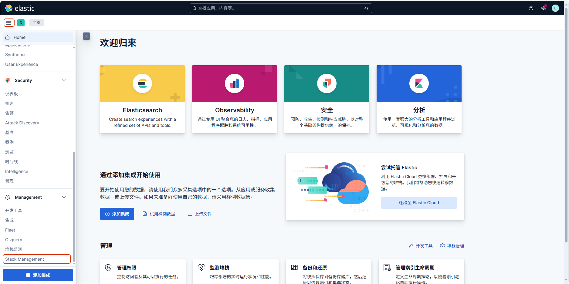curl -X GET "https://192.168.0.100:9200/_cat/indices?v" -u elastic:你的密码 --insecure启动Kibana后,通过http://localhost:5601/进入登录界面