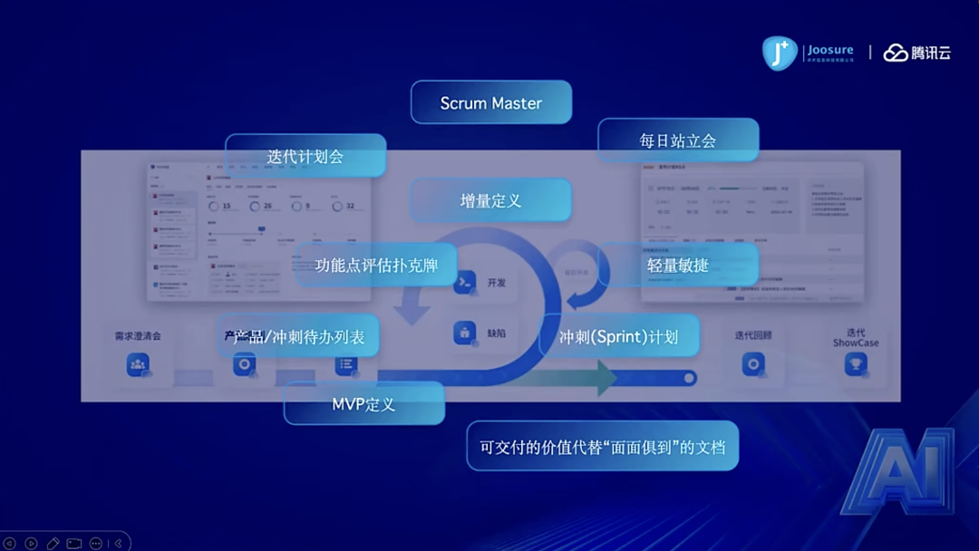 潘兆安在《AI赋能的敏捷研发实践》中,则分享了卓术科技如何结合TAPD与AI技术,优化需求分析、任务拆分和进度预测的全流程实践。