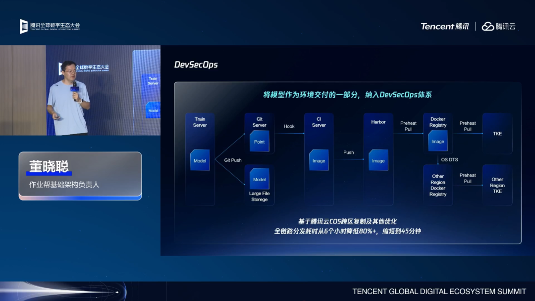 作业帮针对教育场景算力供需的矛盾,搭建统一算力网络,通过 Docker+K8s 容器调度、跨区域云联网、GPU共享(qGPU)、在离线混部等策略,解决算力不足难题,节省算力成本。通过腾讯云对象存储 COS 优化模型分发,全链路耗时从6小时缩至45分钟。同时,借助 Agent、MCP 协议与向量数据库,将基础服务接入效率提升10倍,构建起教育行业 AI 与基础设施协同的高效范式。