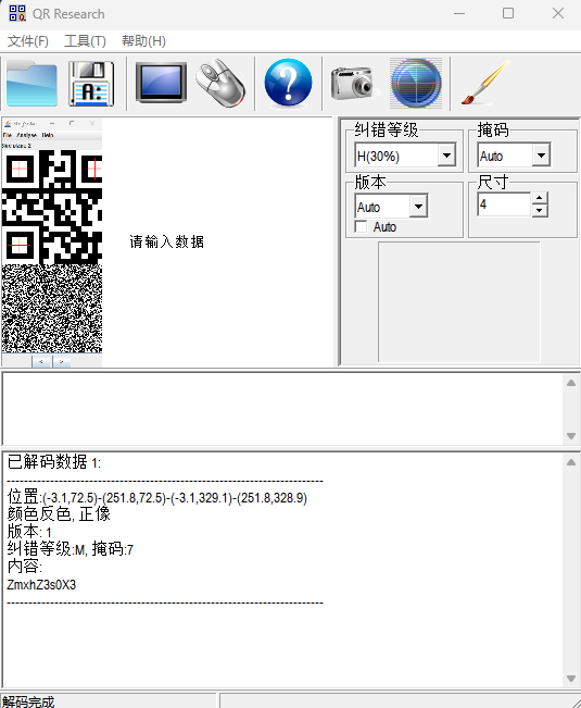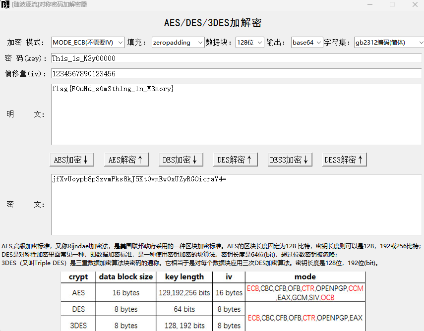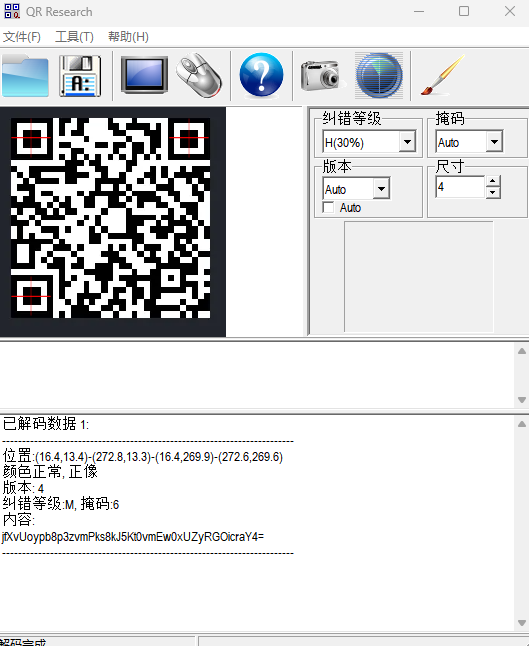 用qr_research对二维码进行扫描。得到一串密文,由于上面给了一个key和iv,这里怀疑用了AES加密。