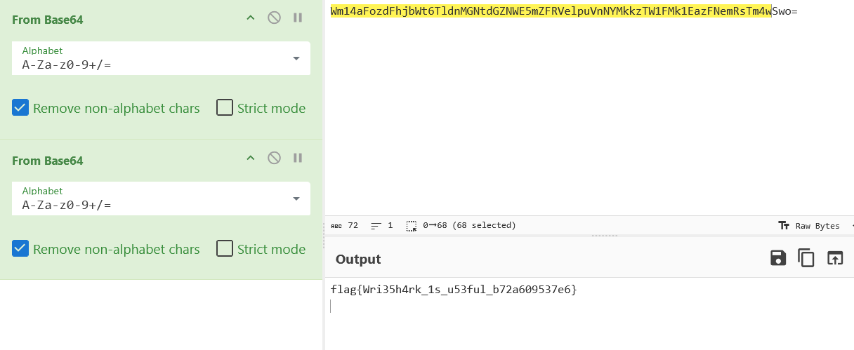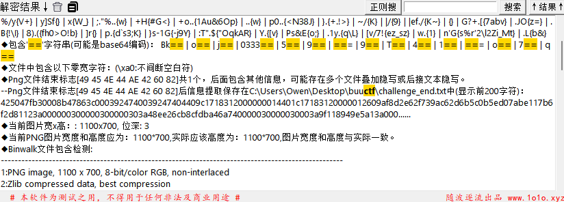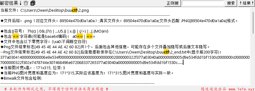 第二张图片,老样子先放进随波逐流工具,发现末尾存在字符,工具导出后的字符放进CyberChef看看是什么东西。